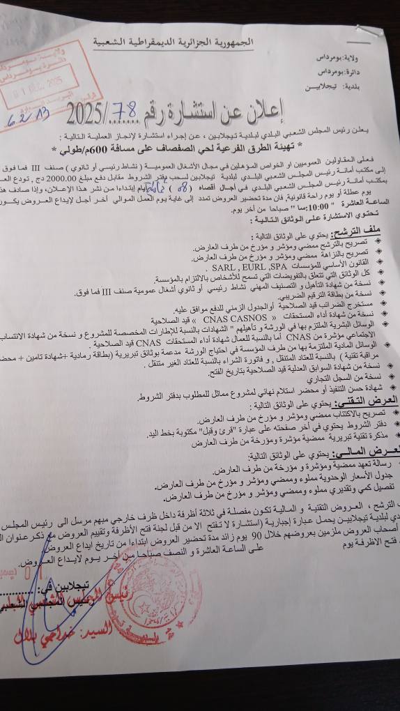 يعلن رئيس المجلس الشعبي البلدي لبلدية تيجلابين، عن اجراء استشارة رقم 78
