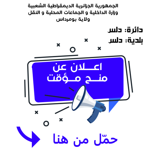 يعلن السيد رئيس المجلس الشعبي البلدي لبلدية دلس عن منح مؤقت رقم 08 لانجاز المشروع التالي
