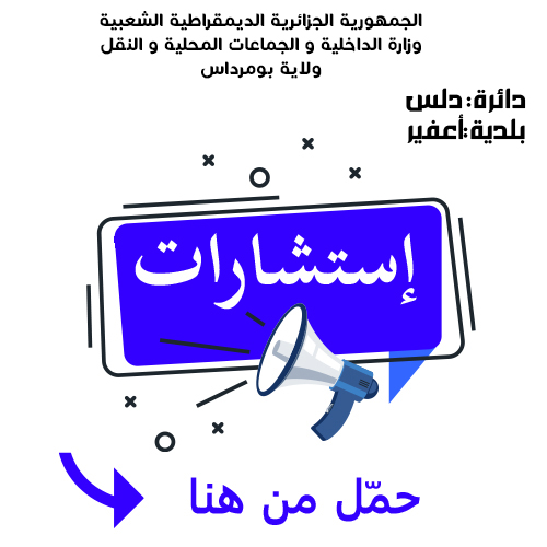 يعلن السيد رئيس المجلس الشعبي البلدي لبلدية أعفير عن استشارة رقم 16 لانجاز المشروع التالي