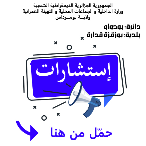 يعلن السيد رئيس المجلس الشعبي البلدي لبلدية بوزقزة قدارة عن استشارة رقم 15 لانجاز المشروع التالي