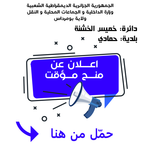 يعلن السيد رئيس المجلس الشعبي البلدي لبلدية حمادي عن منح مؤقت لانجاز المشروع التالي