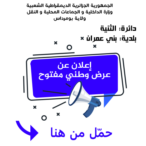 إعلان عن طلب عروض وطني مفتوح مع اشتراط قدرات دنيا رقم 03 لبلدية بني عمران