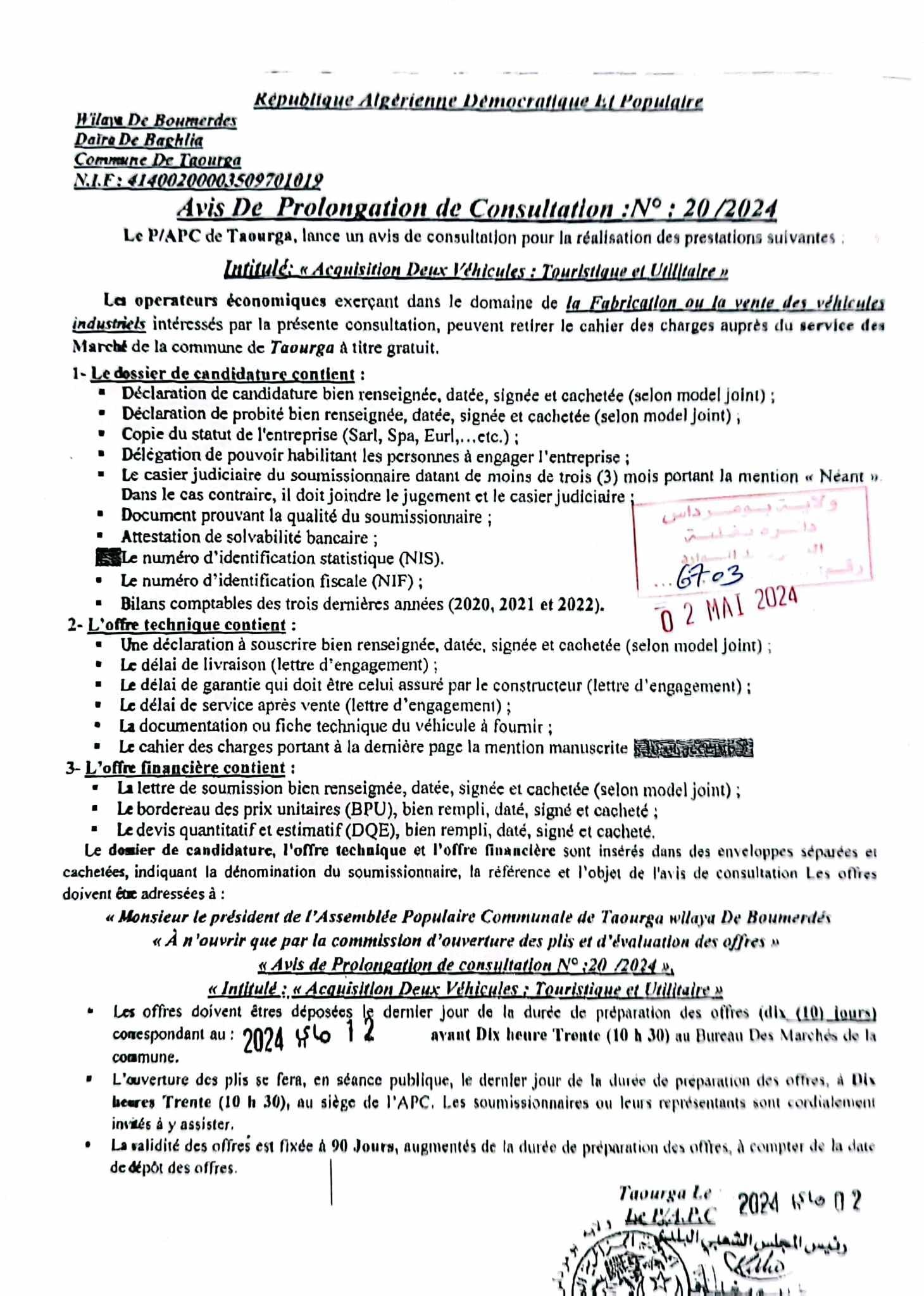إعلان عن استشارة بلدية تاورقة