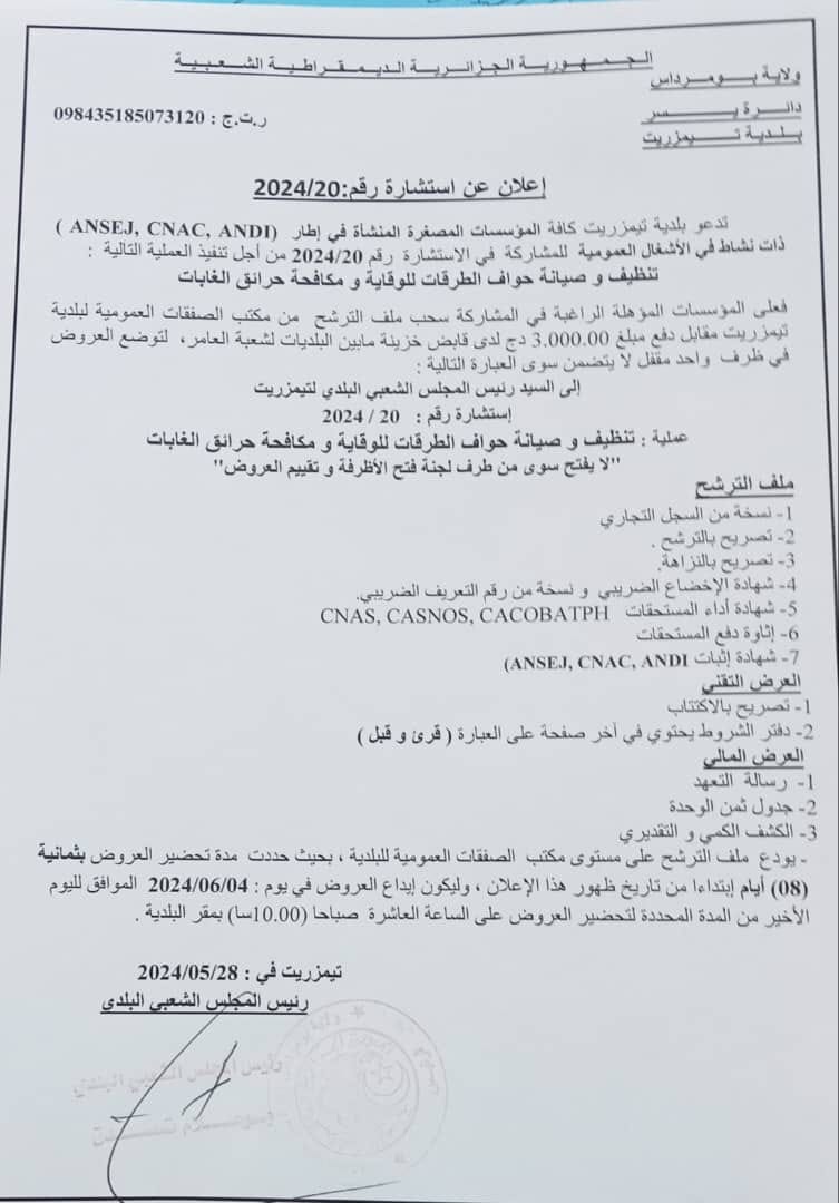 إعلان عن استشارة رقم 20بلدية تيمزريت