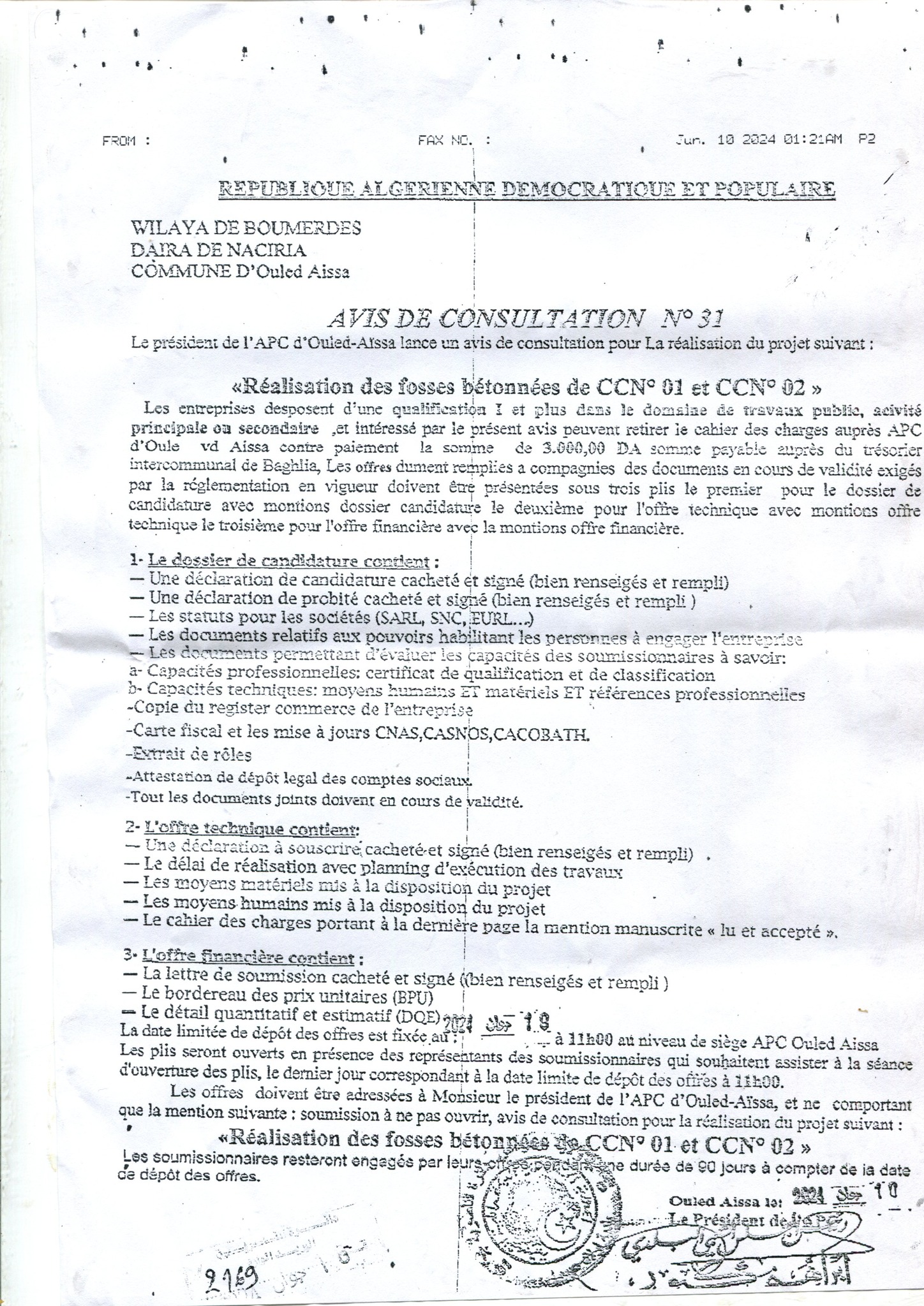 بلدية اولاد عيسى 11/06/2024 - 09:30