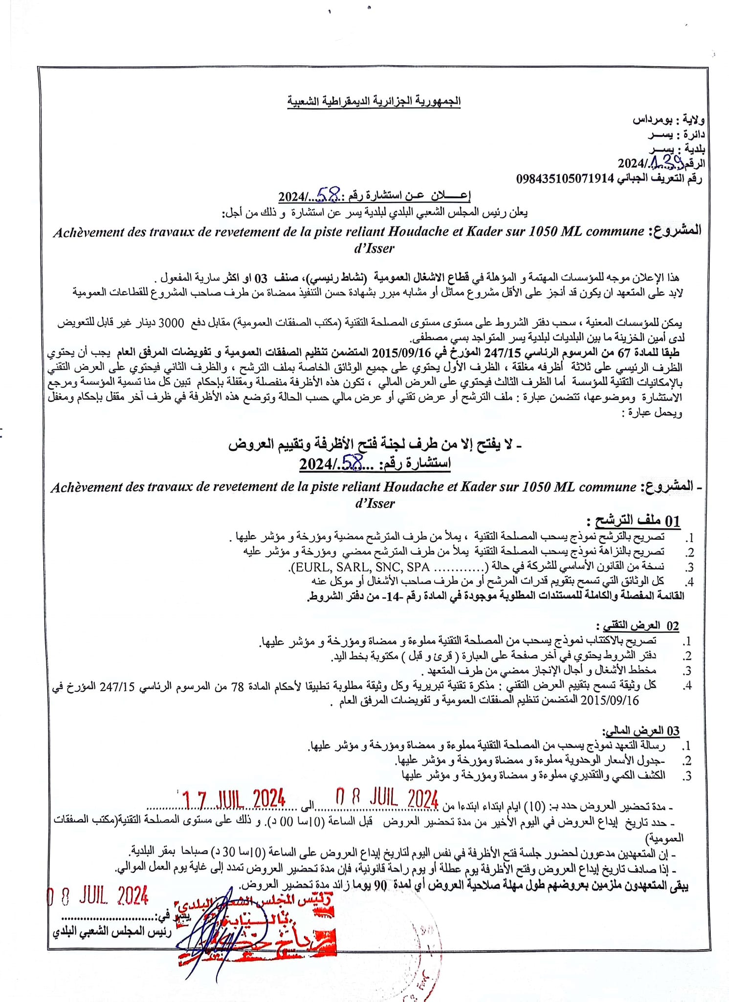 اعلان عن استشارة رقم 2024/58