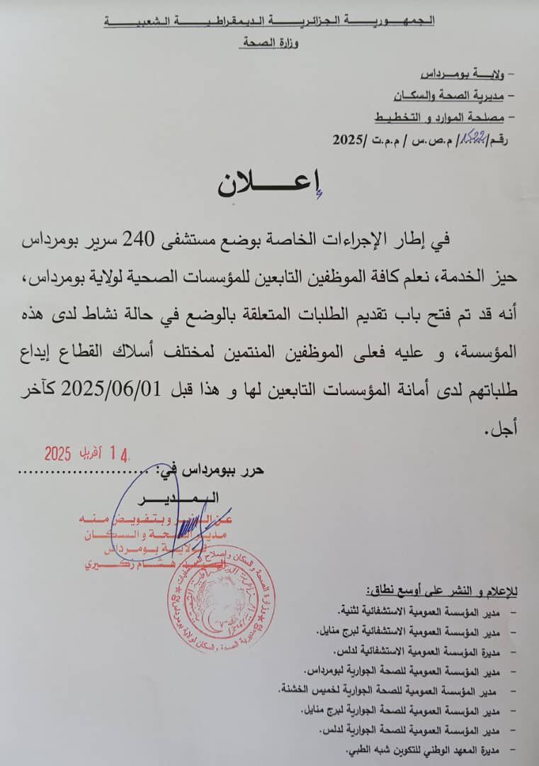 اعلان مديرية الصحة و السكان