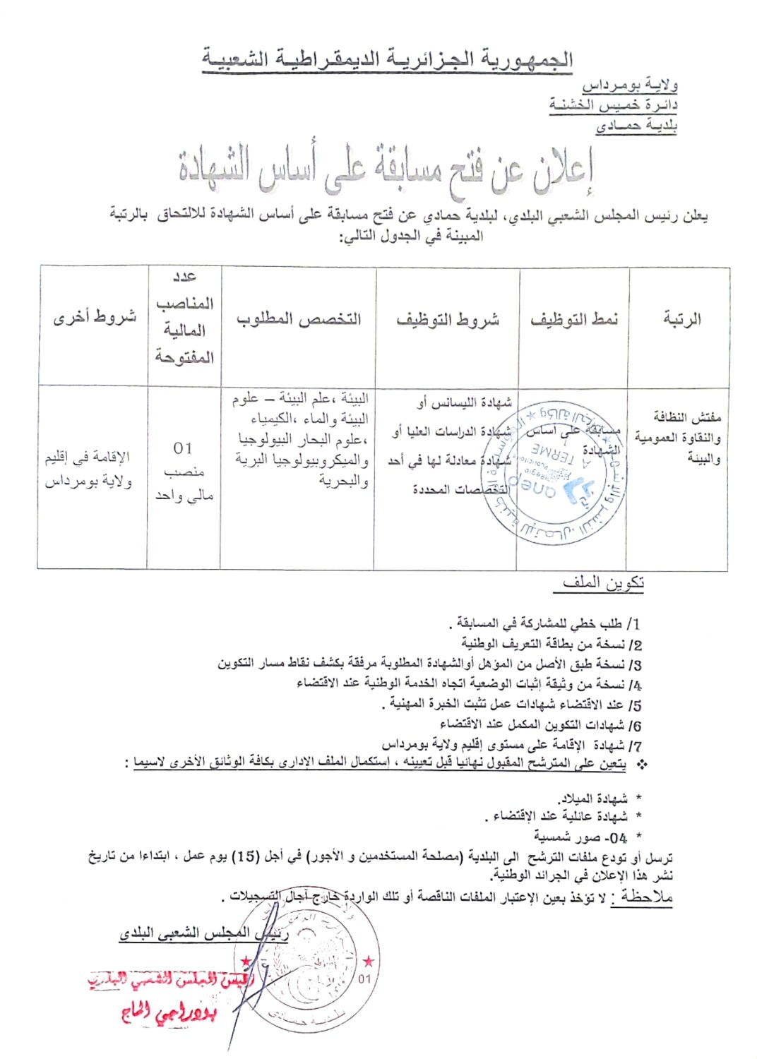 اعلان عن فتح مسابقة على اساس الشهادة