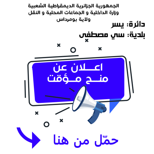 يعلن السيد رئيس المجلس الشعبي البلدي لبلدية سي مصطفى عن منح مؤقت لانجاز المشروع التالي