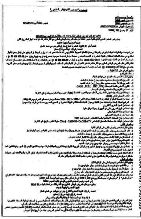 يعلن السيد رئيس المجلس الشعبي البلدي لبلدية خميس الخشنة عن طلب عروض وطني مفتوح مع اشتراط قدرات دنيا  لانجاز المشروع التالي